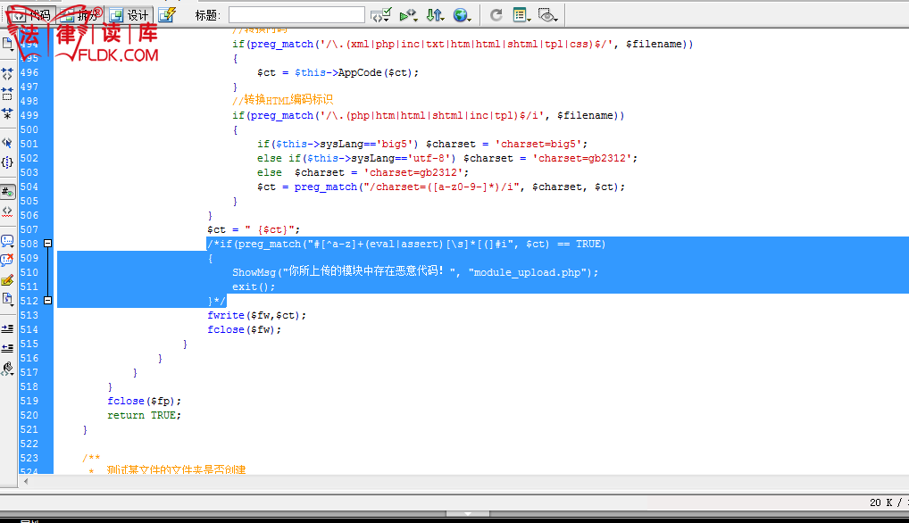 找到 /include/dedemodule.class.php 文件,第580-512行
